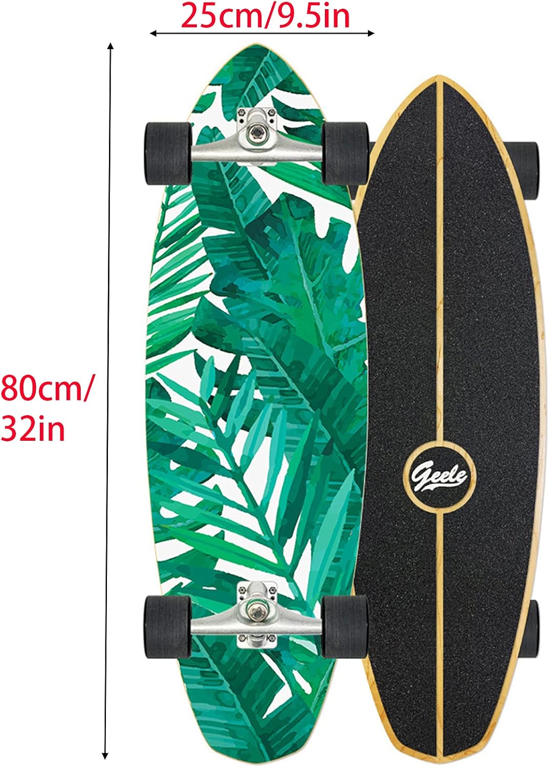 Carver Surfskate 80x25cm Longboard en Érable pour Débutants avec Roulements ABEC-11, CX4, B