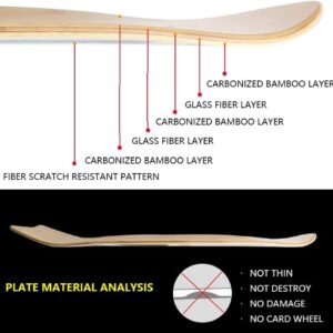Conception Durable et Stable : Fabriqué en bois d’érable canadien à 7 couches haute densité, notre skateboard vous promet une adhérence fermement ancrée pour un maximum de stabilité. Capable de supporter jusqu’à 150 kg, il convient aux enfants comme aux adultes.