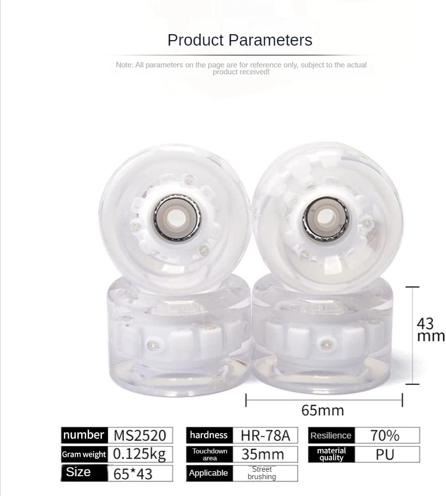 - Roues claires et élégantes : Choisissez un look transparent pour une touche moderne et épurée à votre planche.